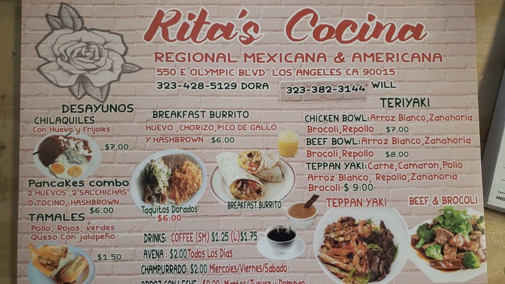 Welcome to Rita's Cocina, a delightful American-Mexican eatery nestled in the heart of Los Angeles' Fashion District. This hidden gem offers a vibrant menu that celebrates homemade flavors, inviting you to indulge in a variety of dishes prepared with love.